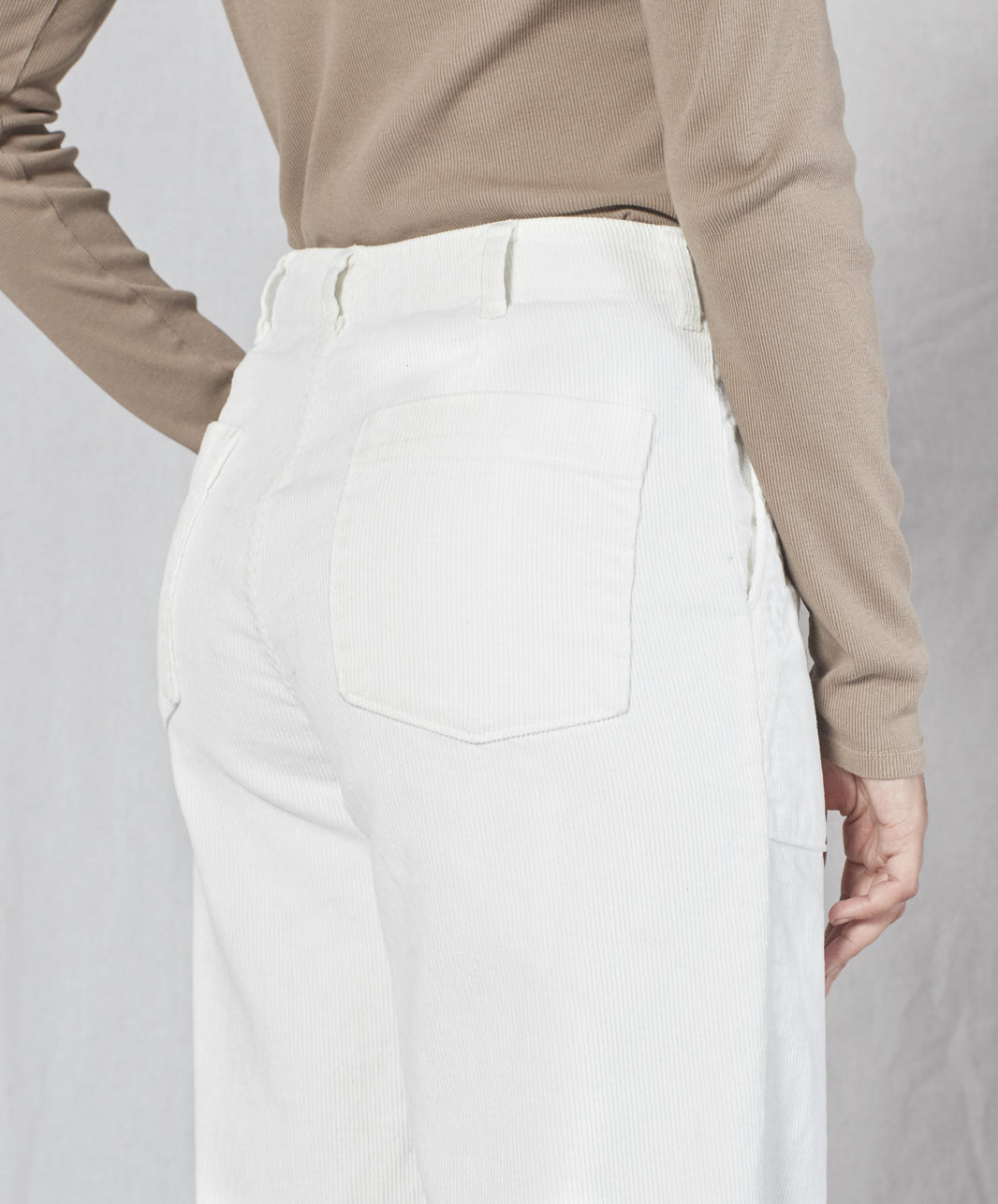 - Belt loops, zip fly, and natural corozo nut buttons for the win.