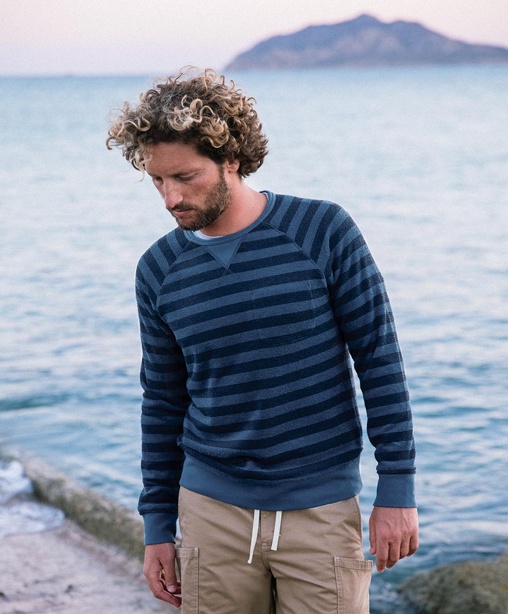 - Elevated basic crew neck sweatshirt made from our cotton-recycled polyester blend terry toweling with a brushed interior