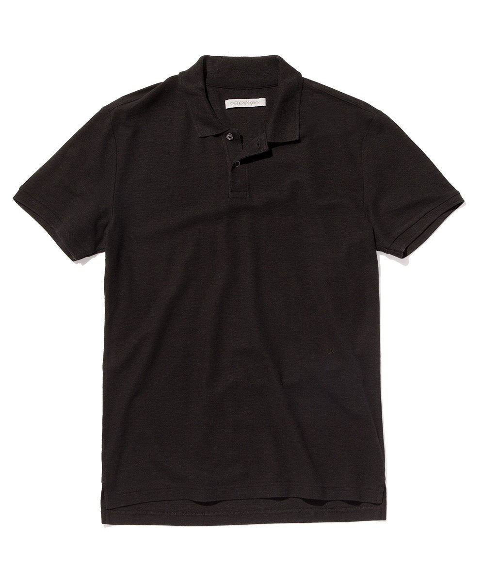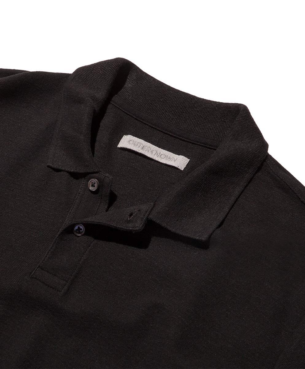 215-gram hemp and organic cotton blend pique knit polo with a flat knit collar.