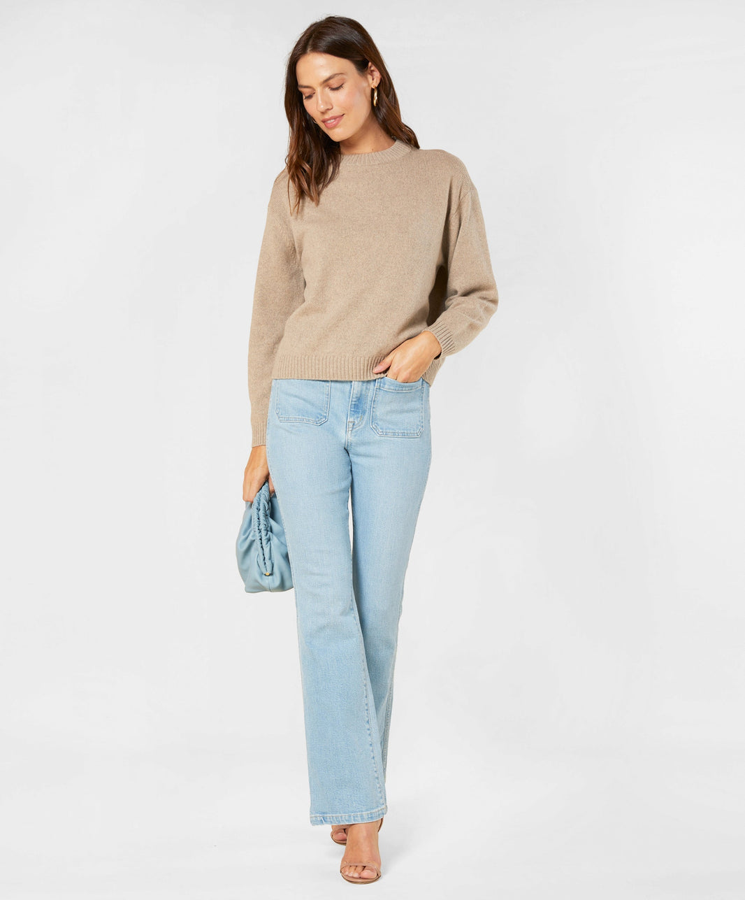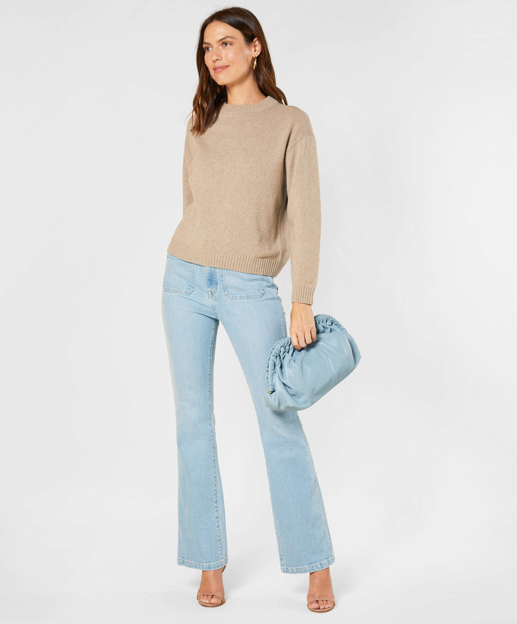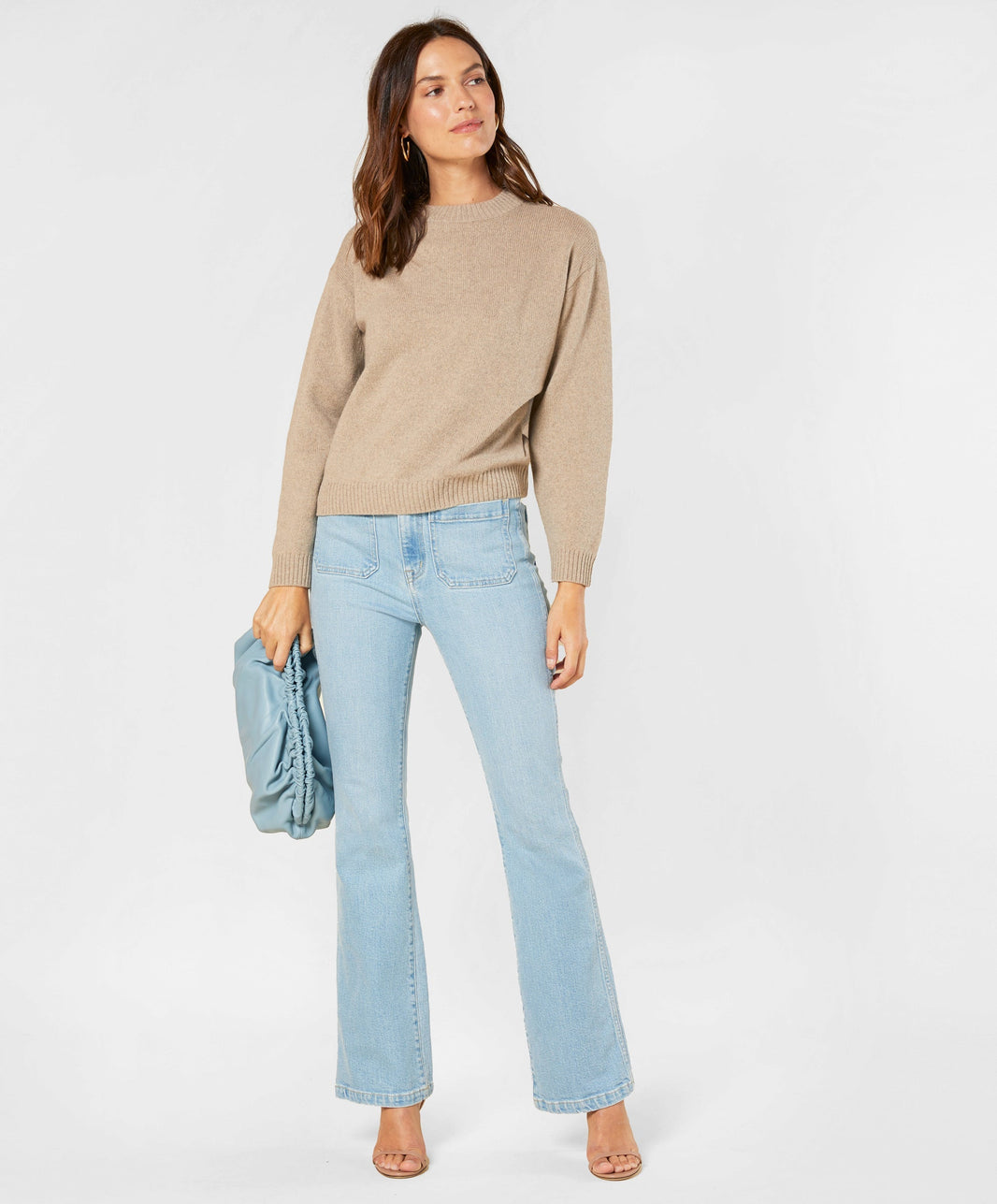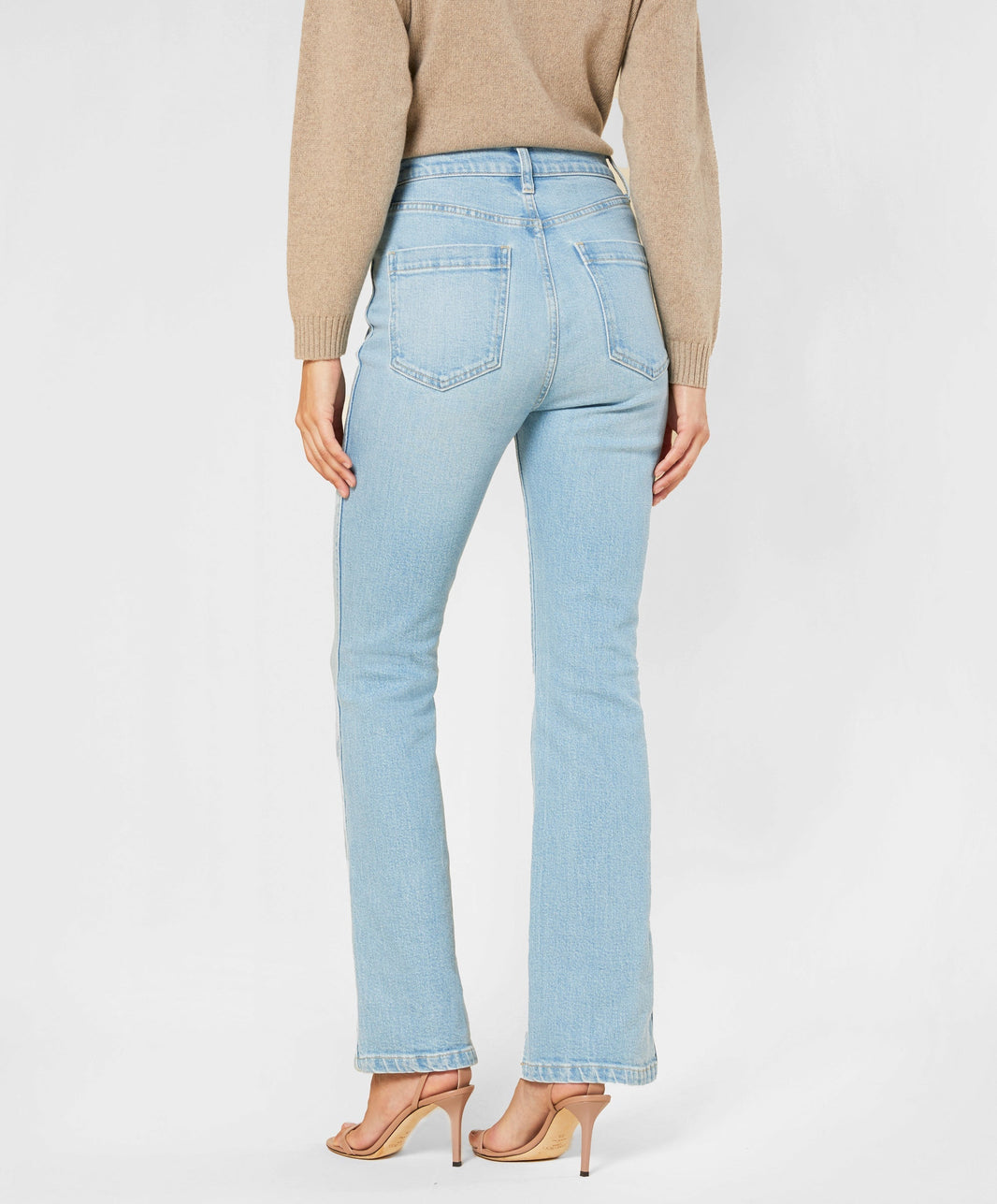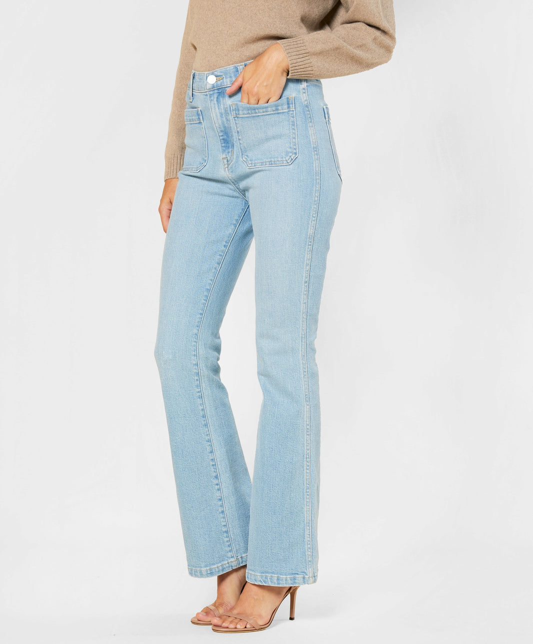 A ‘70s-inspired high-rise flare jean with patch pockets designed to give you legs for days.
